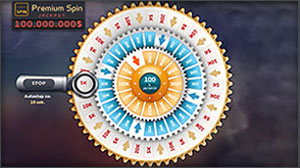 Premium Spin es un juego de bonificación diario, con el cual siempre ganas. El juego se concede por la actividad del día anterior. Consigue la máxima cantidad de puntos VIP y juego por el 100% del Jackpot en nuestro servicio, que asciende a 100.000.000$.